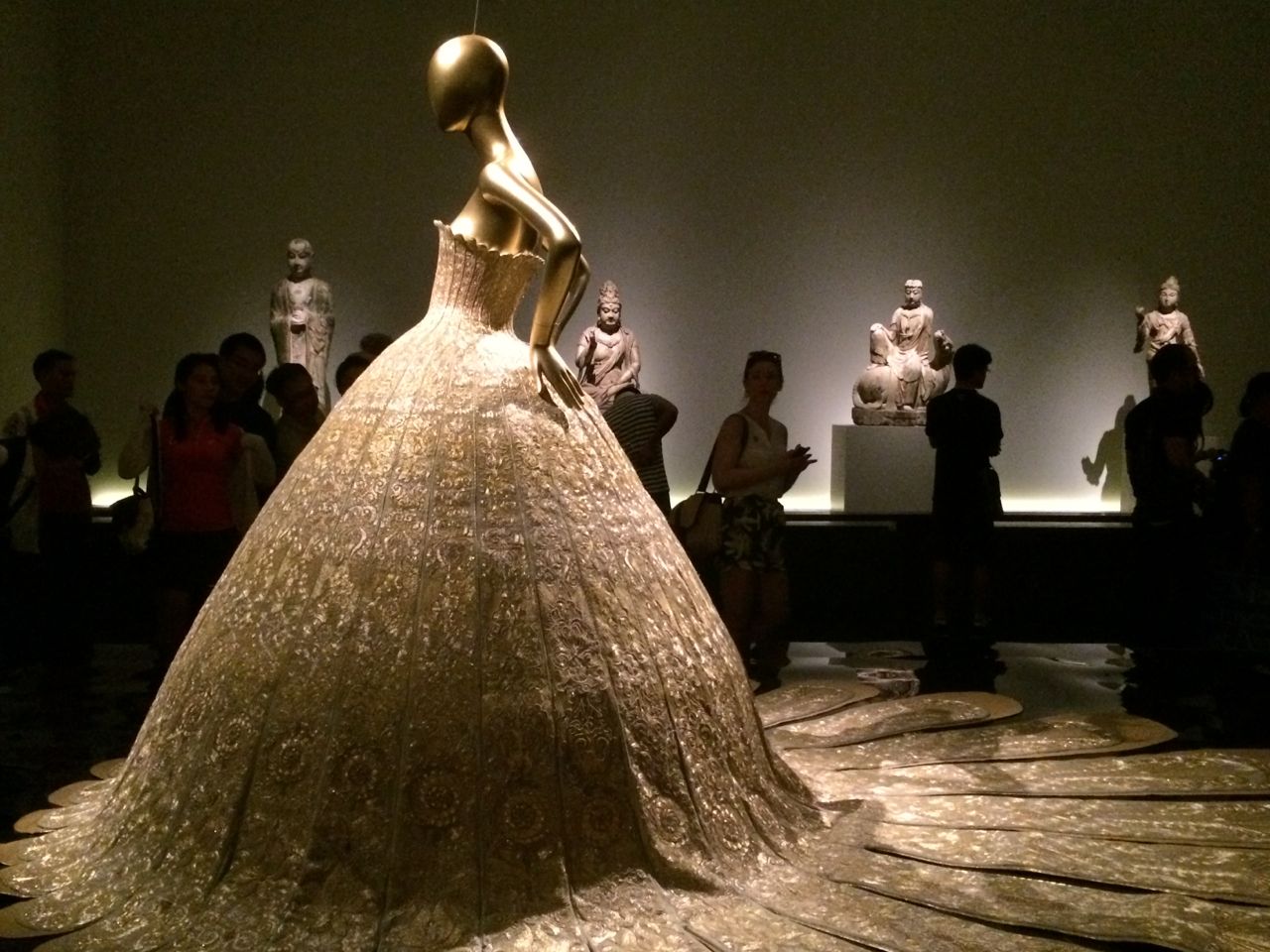 Unlike the Chinese exhibit at the Met, the Paine was able to place the costumes against backgrounds that made you see more than the clothes. Pairing the clothes with the soft light of Tiffany lamps and the furnishings selected by the Paines you can see the characters from Downton slipping into these fashions and becoming the characters many of us have grown to love.